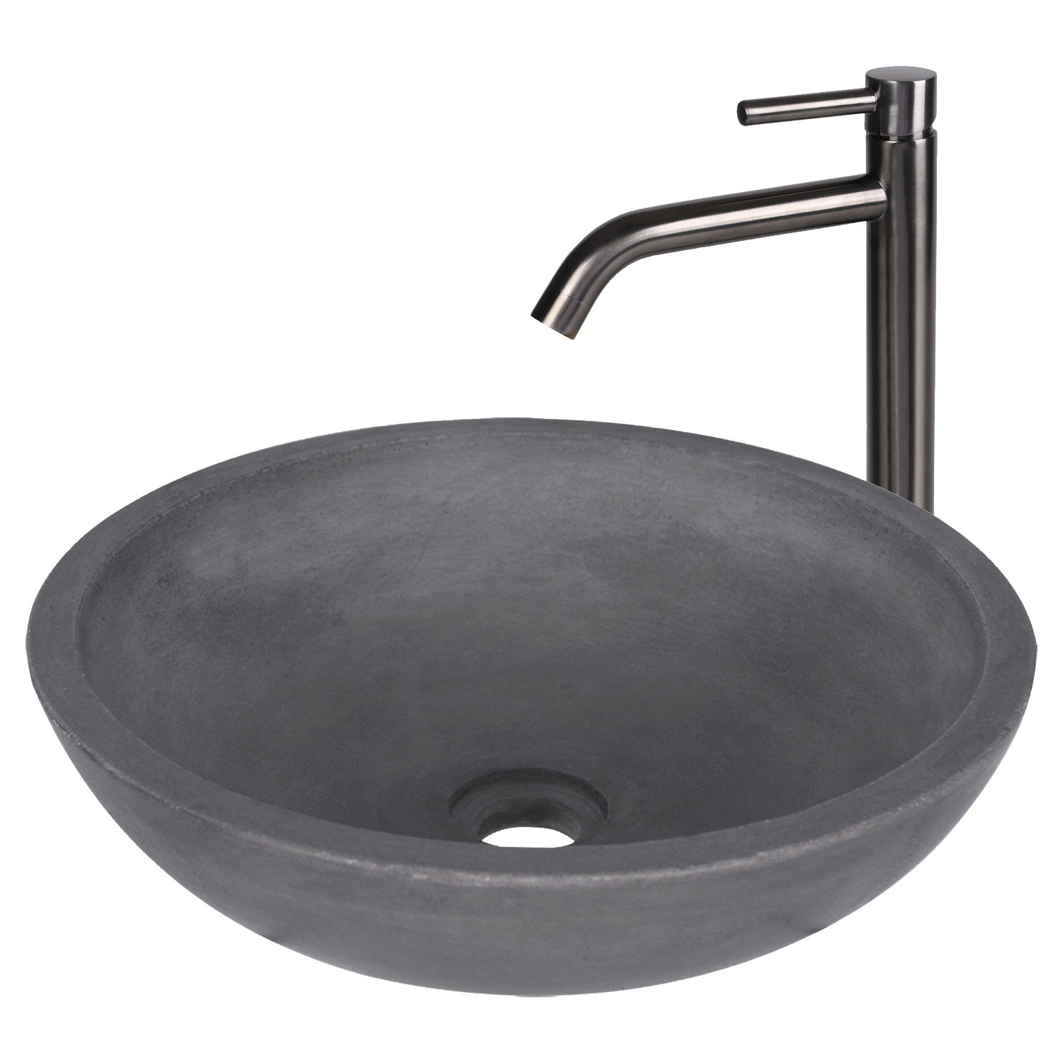 Een prachtige waskom van beton die uw badkamer een stoere uitstraling geeft. Geen standaard materiaal waskom maar van unieke beton van maar liefst 40 cm. U creeert met dit model iets speciaals voor in de badkamer. Ook is de waskom voorzien van een practige opbouw kraan in de kleur Gunmetal. Deze kraan heeft een afmeting van 4.5x17.4x30.6.