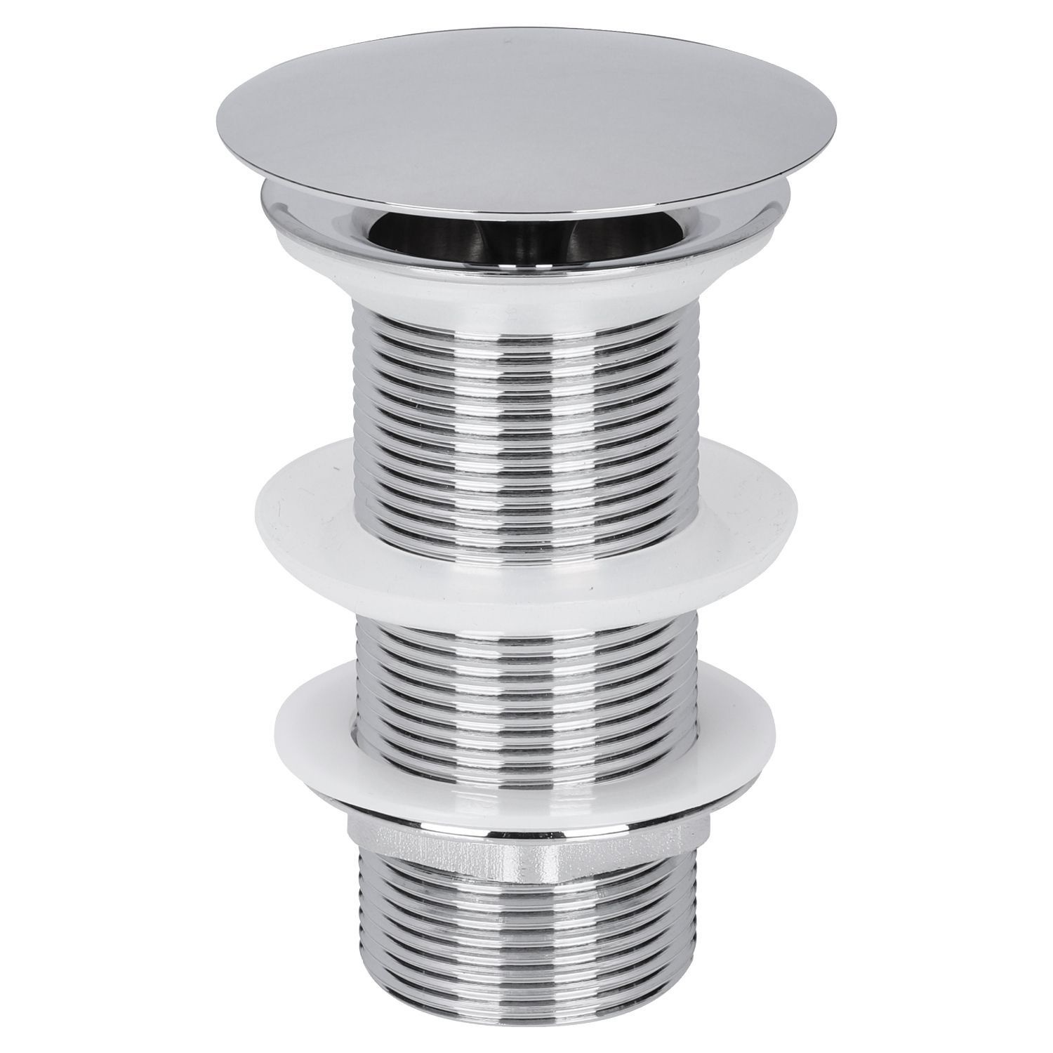 Met deze afvoerplug maakt u het design van uw wastafel helemaal af. Deze plug staat standaard open en wordt niet afgesloten. De plug is gemaakt van messing en afgewerkt in chroom. Ook verkrijgbaar in mat chroom, mat zwart, rood koper, mat wit, gunmetal en goud.