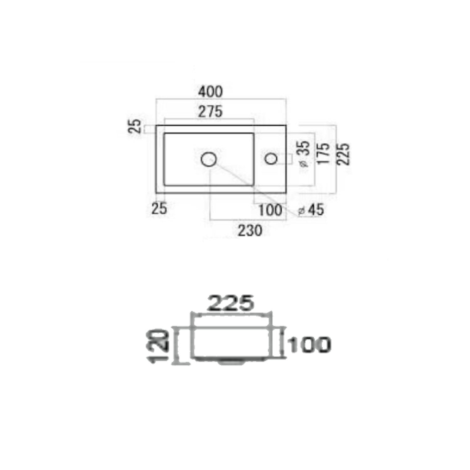 De fonteinwastafel heeft een afmeting van 40 cm bij 22,5 cm.