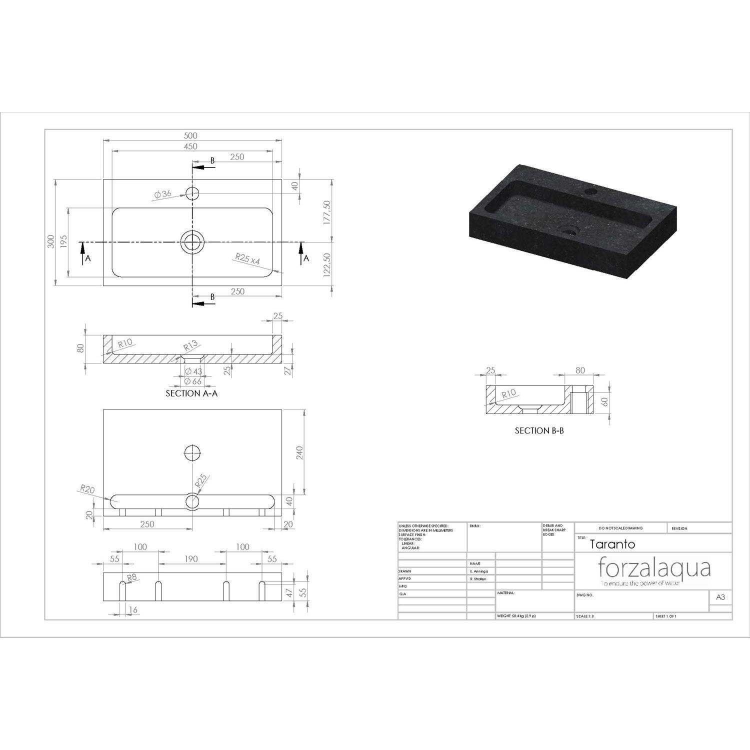 De grondstoffen zijn nauwkeurig gekozen en worden geproduceerd uit de oudste steengroeven uit de hele wereld. Hier komen onder andere hoge kwaliteit graniet, travertin en marmer vandaan. De blokken worden handmatig bewerkt wat resulteert in unieke producten van het merk Forzalaqua. De wastafels zorgen ervoor dat u keer op keer kunt genieten van een uniek stukje vakwerk in uw badkamer, door de schoonheid van puur natuursteen.