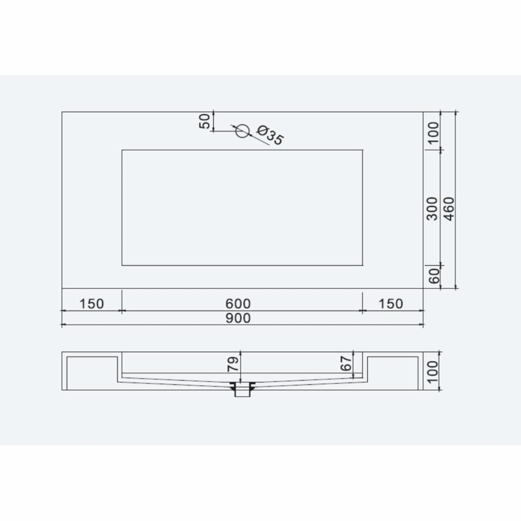 Deze wastafel is geproduceerd in de kleur mat wit en heeft een rechthoekige vorm. De hoogte van deze wastafel bedraagt 10 cm, de diepte 46 cm en de breedte 90 cm. Het matte, fluweelachtige oppervlak van dit artikel voelt prettig aan en is makkelijk schoon te maken en te onderhouden. De wastafel wordt geleverd met een bevestigingsset. Het water in de wasbak wordt afgevoerd door een smalle goot aan de achterkant.