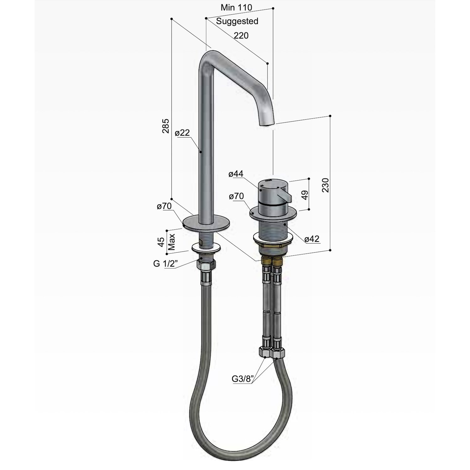 Deze prachtige wastafelmengkaan is van het merk Hotbath uit de serie Ace . De mengkraan heeft een tijdloos design en dat volledig van geborsteld messing PVD . Dankzij de PVD coating heeft de kraan een blijvende mooie kleur. De coating zorgt ook voor een perfecte glans, slijtvastheid en uitmuntende krasbestendigheid. Door de Hoge uitloop is het een ruim design voor een strakke uitstraling. De kraan is gemaakt van hoogwaardig messing . kwaliteit is een kern waarde van Hotbath dus hier zal u zeker niet in mis slaan. Deze kraan is duurzaam door zijn koude start dit houd in wanneer u de kraan opent in de neutrale stand geeft de hij alleen koud water. De CV slaat niet aan en dat bespaart energie. De kraan beschik over een warm en koud aansluiting en wanneer u de hendel bedient kunt u de door u gewenste temperatuur erg gemakkelijk instellen. De kraan kent een hoogte van 28 cm en een Lengte uitloop van 22 cm. De uitloop hoogte van deze kraan is 23 cm.