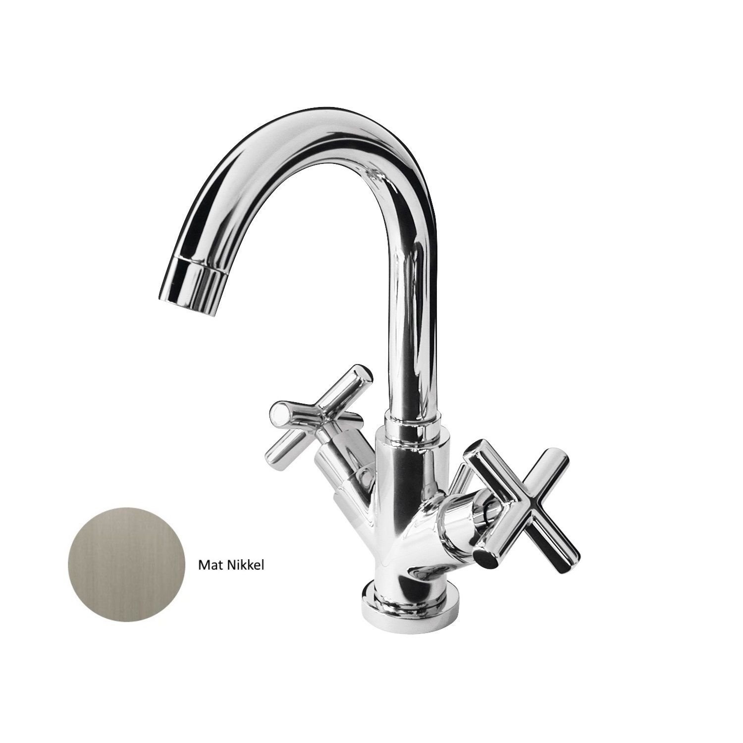 De Giulini wastafelkraan van het merk Sanimex heeft een mat nikkel-kleurige afwerking en beschikt over twee kruisgrepen waarmee u de temperatuur van het water eenvoudig kunt regelen. De kraan bevat ook een draaibare uitloop. De draaibare uitloop maakt het mogelijk om een dubbele vaat met water te vullen. Verder wordt de kraan inclusief pop-up geleverd, dit wordt ook wel een klikwaste genoemd. De waste bestaat uit een hefboom-mechanisme dat de waterstop omhoog en omlaag beweegt. Een losse stop is hierdoor niet meer nodig.