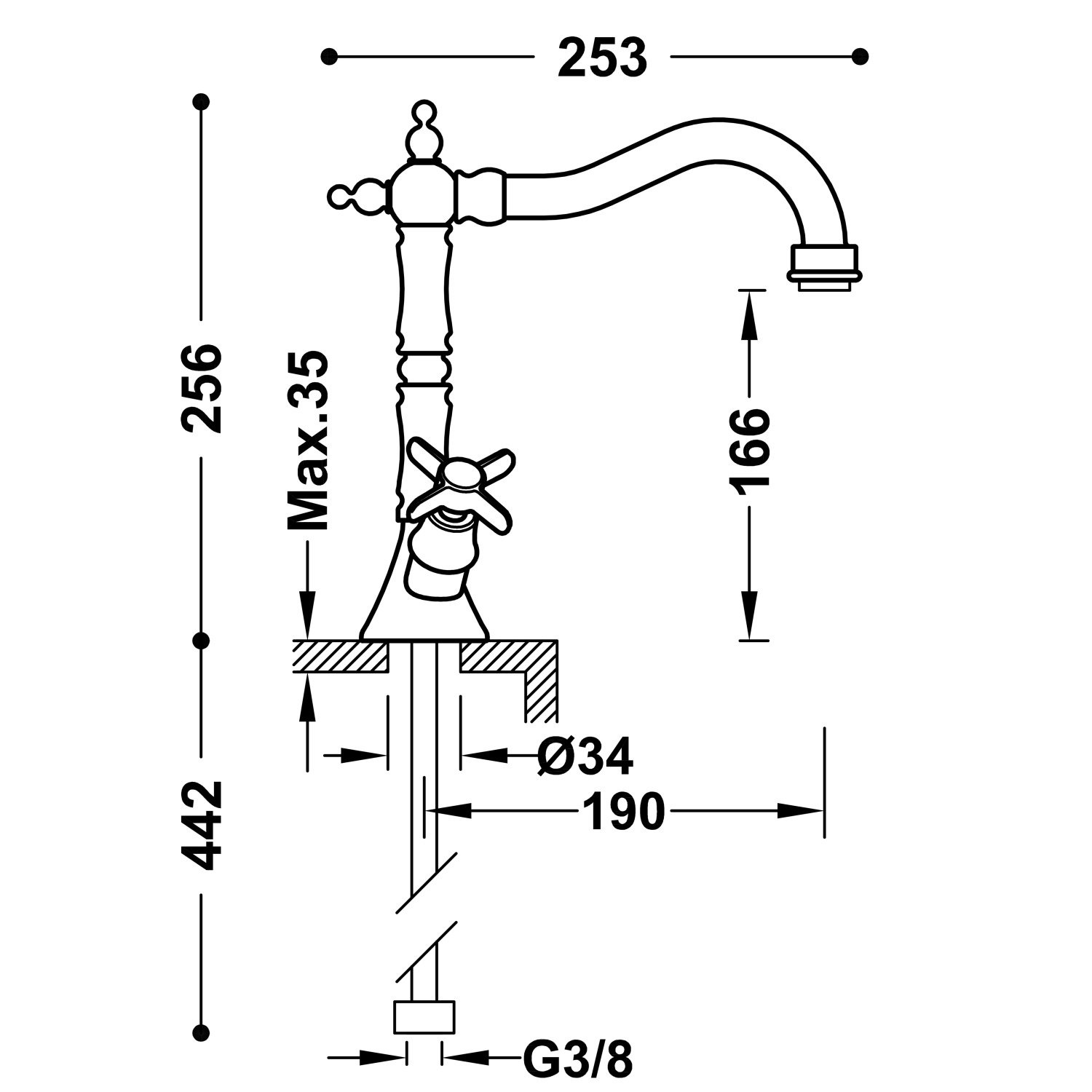 Deze wastafelmengkraan van de serie 'Clasic' van Tres heeft, zoals de serienaam al zegt een klassiek uiterlijk. De kraan is elegant en speels door zijn gebogen uitloop en zijn 2 grepen. Hij heeft een hoogte van 25,6 cm en een diepte van 25,3 cm. De uitloop is 16,6 cm hoog en 19 cm lang.