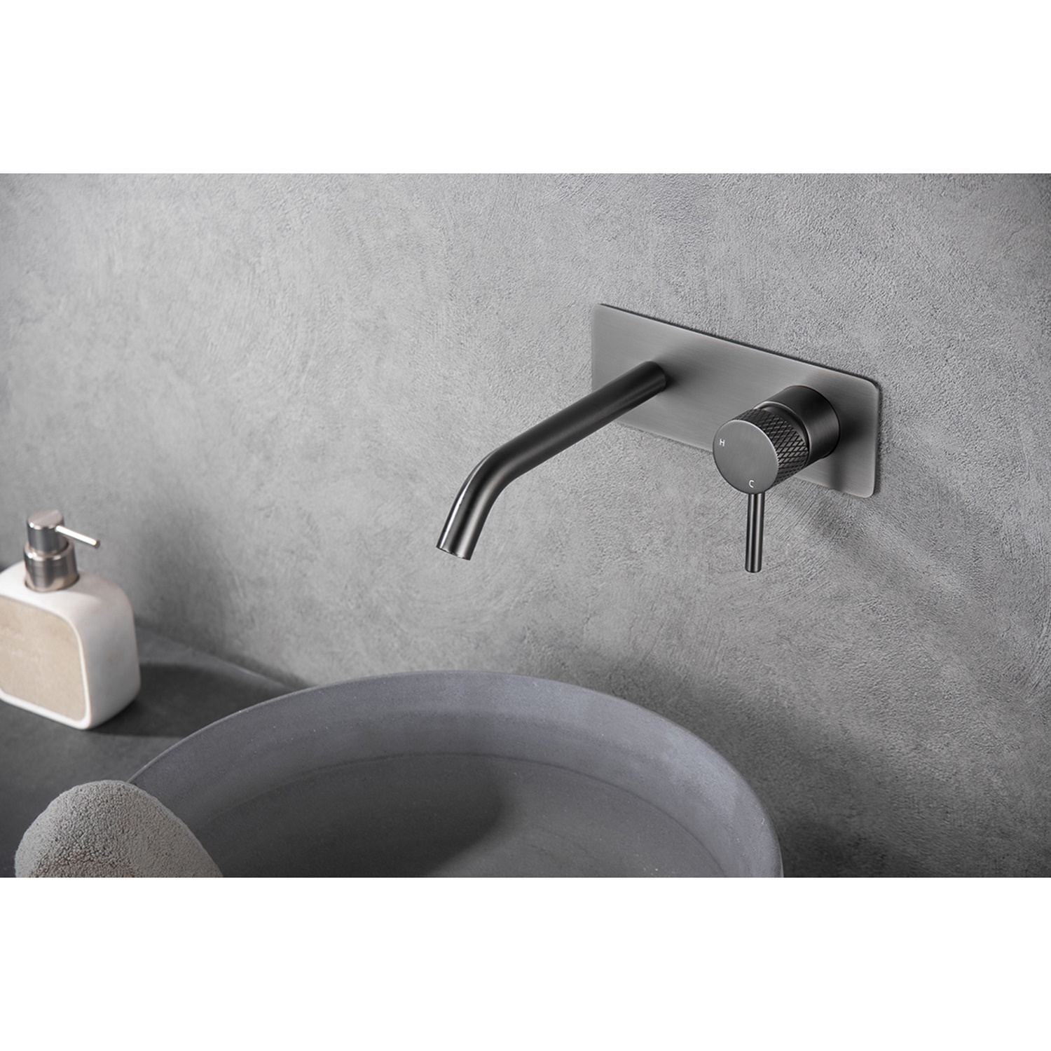 De Ribbd inbouw wastafelkraan van het merk Wiesbaden is gemaakt van messing en heeft een prachtige gunmetal afwerking. Een inbouwwastafelkraan wordt ook wel een wandkraan genoemd, omdat de kraan in de wand wordt gebouwd. De Ribbd kraan kunt u met of zonder afdekplaat monteren!