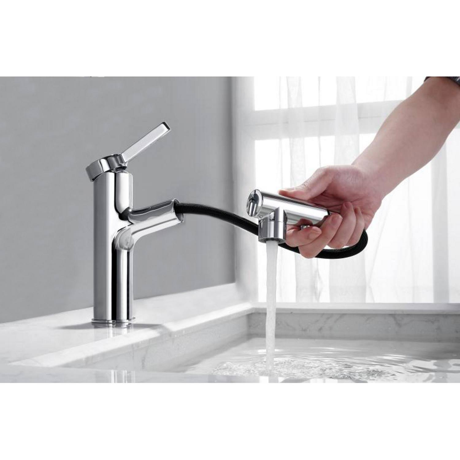 Mooi afgewerkt Wastafelmengkraan in het chroom! Met extra uittrekbare sproeiuitloop.