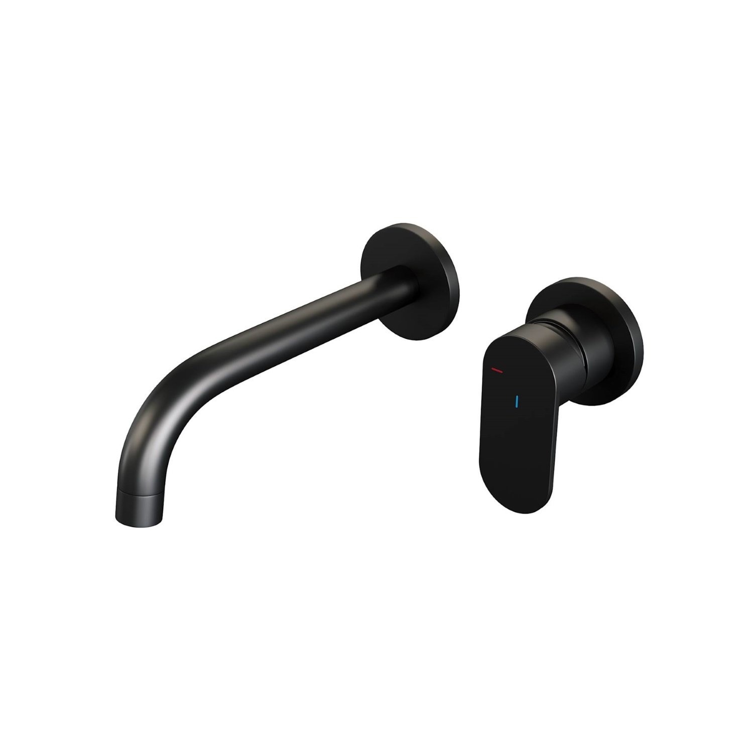 Specificaties Inbouw Wastafelmengkraan Brauer Black Edition Coldstart Gebogen Uitloop Platte Hendel Rechts Mat Zwart Met Rozetten: