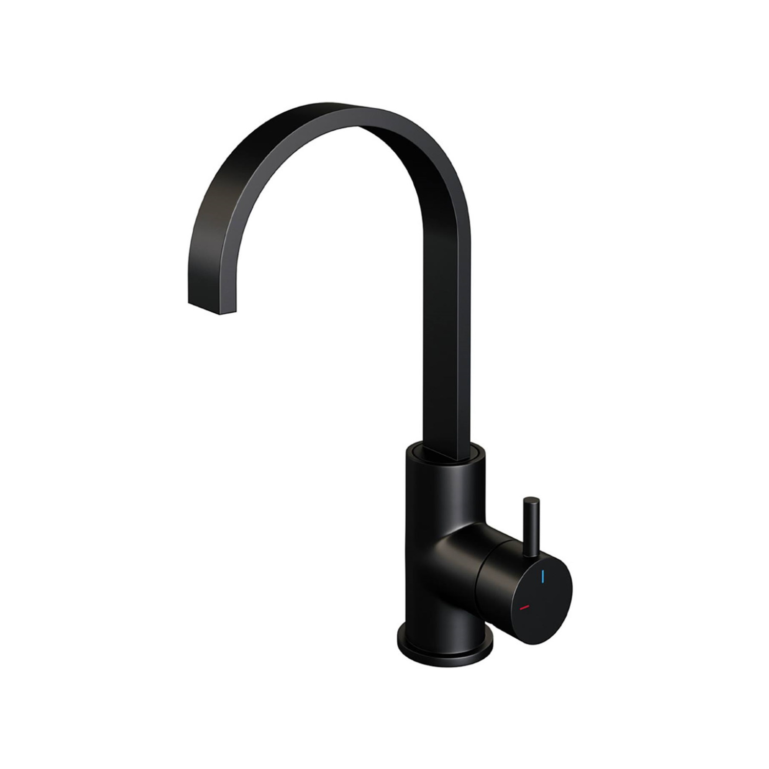 Specificaties Wastafelmengkraan Brauer Black Edition Coldstart Opbouw Hoog Plat Gebogen Korte Ronde Hendel Mat Zwart: