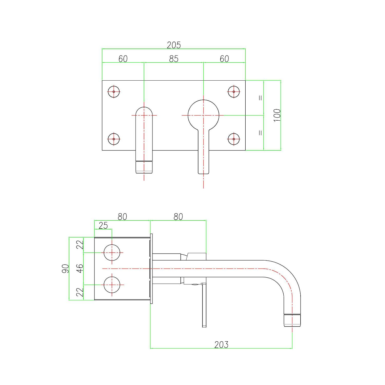 De uitloop heeft een lengte van 20.3 cm. De wastafelkraan dient in de wand bevestigd te worden en wordt exclusief waste geleverd.
