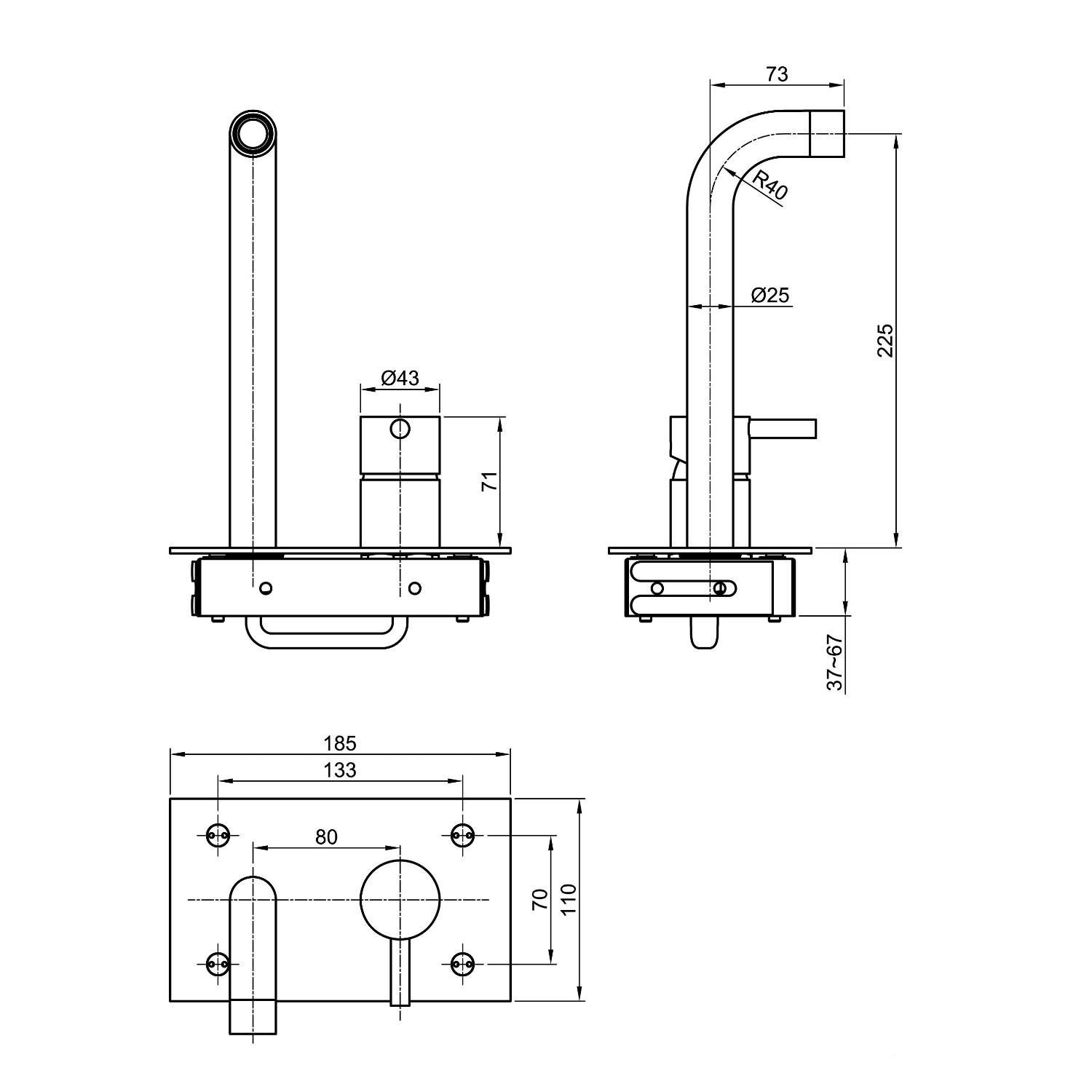 De uitloop heeft een lengte van 22.5 cm. De wastafelkraan dient in de wand bevestigd te worden en wordt exclusief waste geleverd.