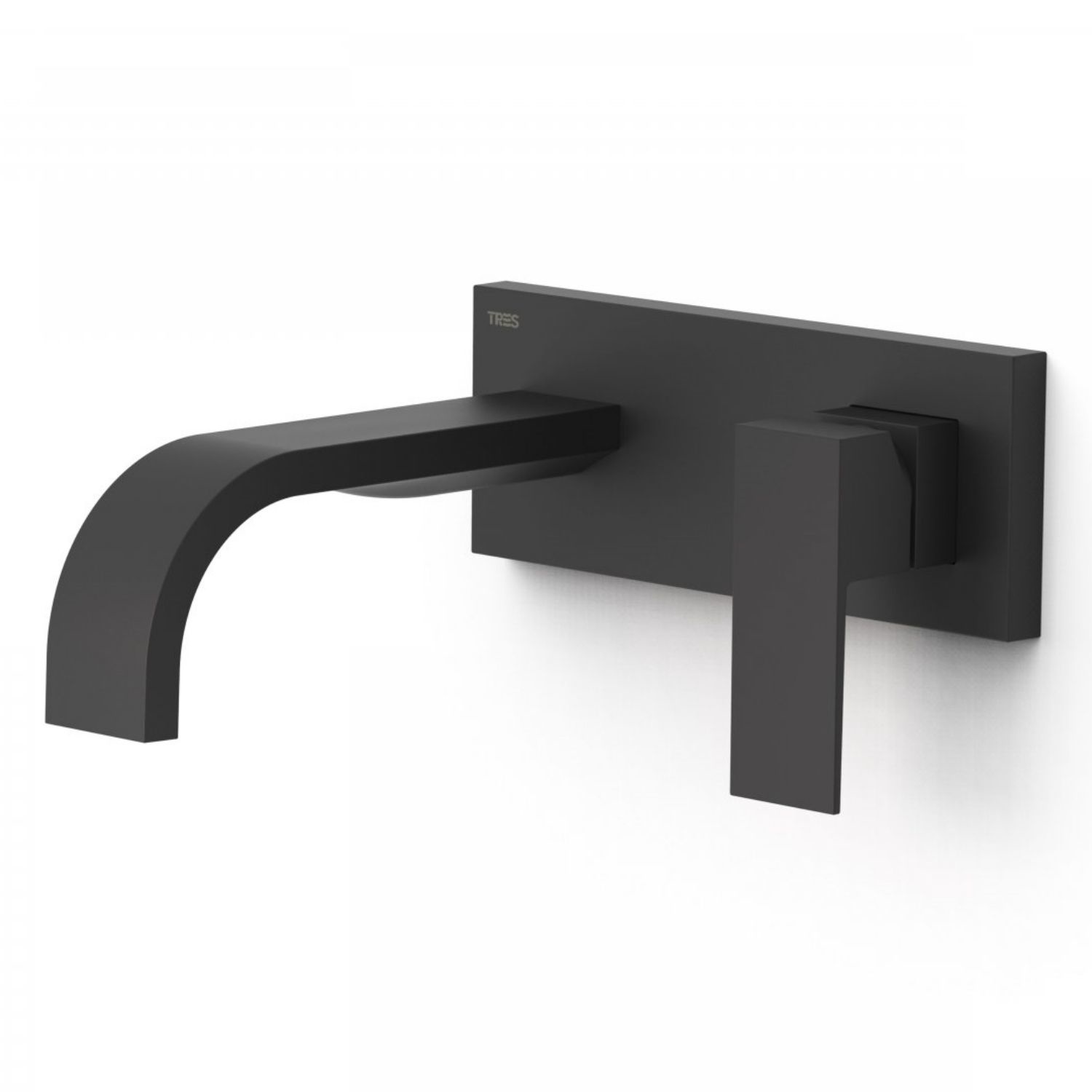 Deze inbouw wastafelkraan van de serie 'Cuadro Exclusive' van Tres heeft een uniek design. De uitloop en hendel bevinden zich op een afdekplaat. De uitloop is gebogen. Deze kraan geeft uw badkamer een moderne touch. Door zijn mat zwarte kleur past hij ook erg mooi bij een industriële of stoere woonstijl. Het is een mengkraan, die u bedient met de hendel. Door de hendel naar voren en achteren te bewegen draait u de kraan open en dicht. Door de hendel naar links en rechts te bewegen mengt u warm en koud water tot de gewenste temperatuur.