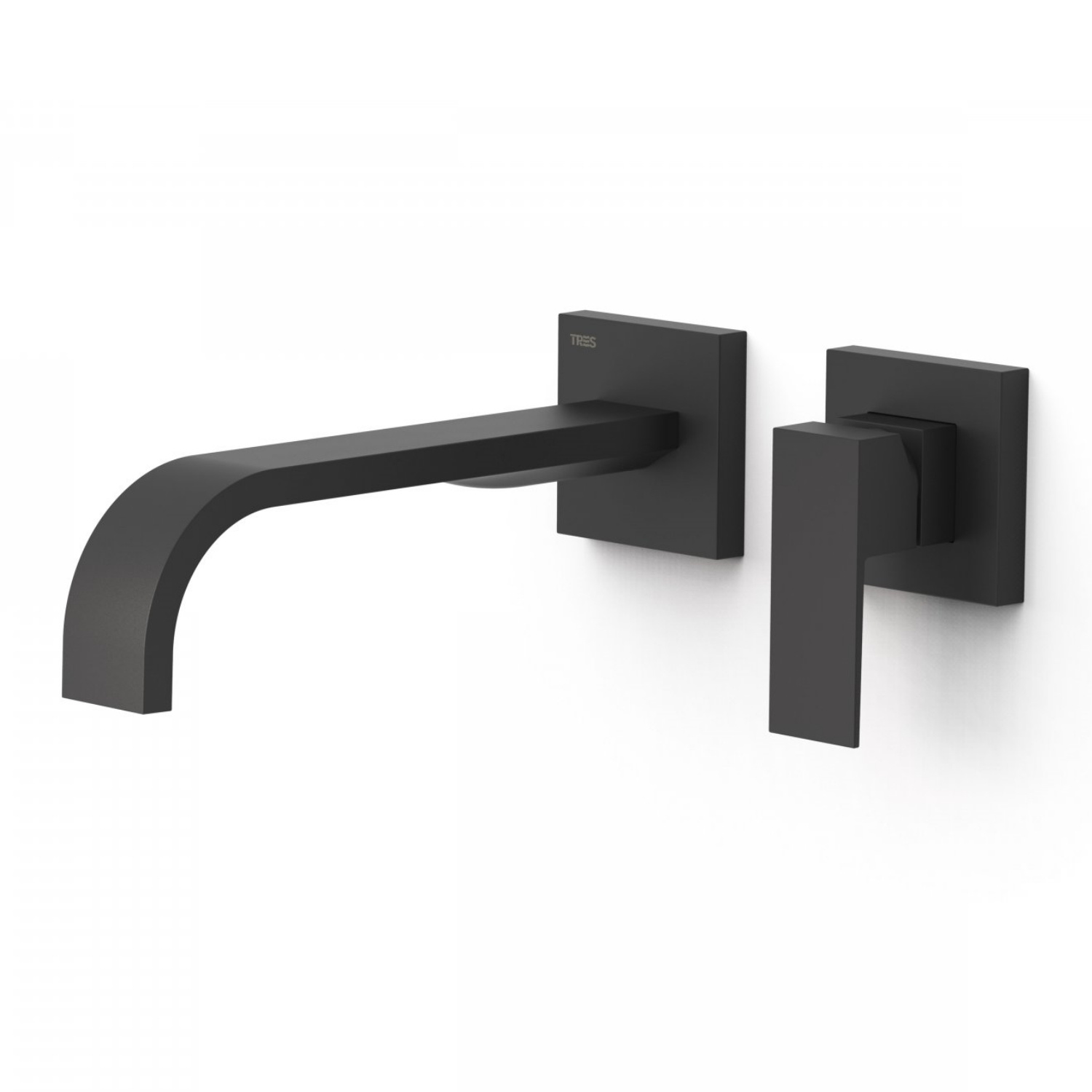 Deze inbouw wastafelkraan van de serie 'Cuadro Exclusive' van Tres heeft een uniek design. De uitloop is lang en gebogen. Deze kraan geeft uw badkamer een moderne touch. Hij is van messing in de kleur mat zwart.