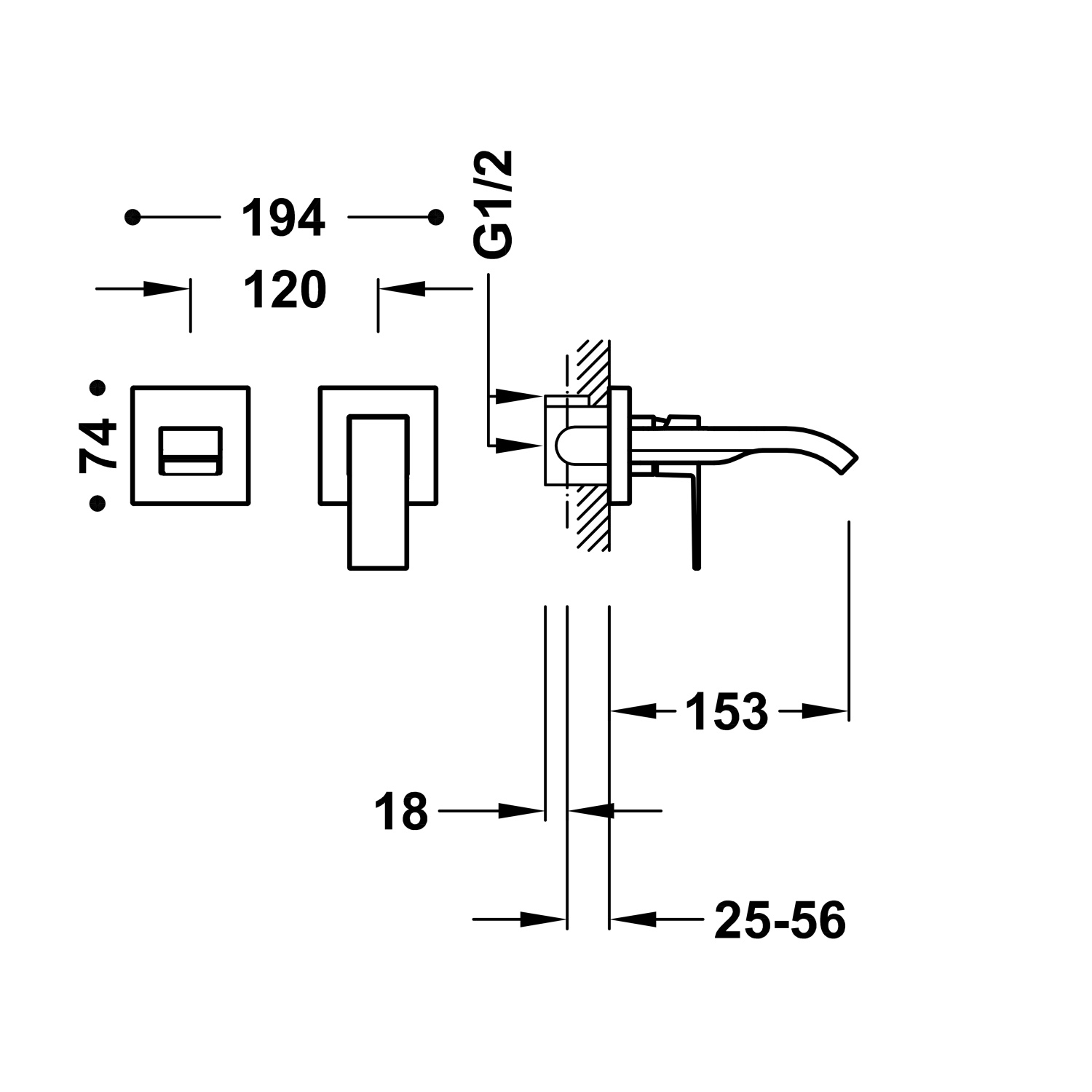 De kraan bestaat uit twee delen: de uitloop en de hendel. Deze bevestigt u beide aan de wand. De uitloop is 15,3 cm lang.