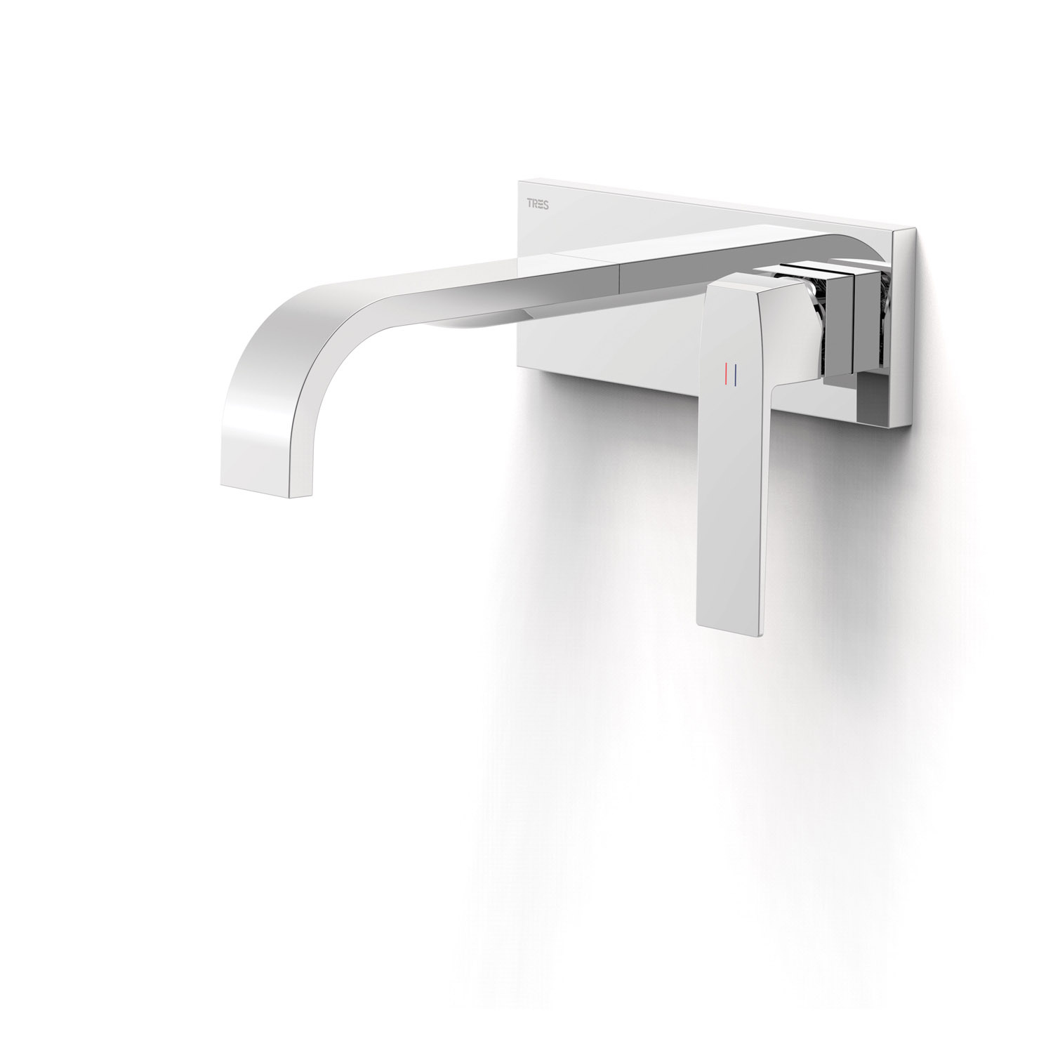 Deze inbouw wastafelkraan van de serie 'Slim Exclusive' van Tres heeft een uniek design. De uitloop en hendel bevinden zich op een afdekplaat. De uitloop is gebogen. Deze kraan geeft uw badkamer een moderne touch. De kraan heeft Chroom look.