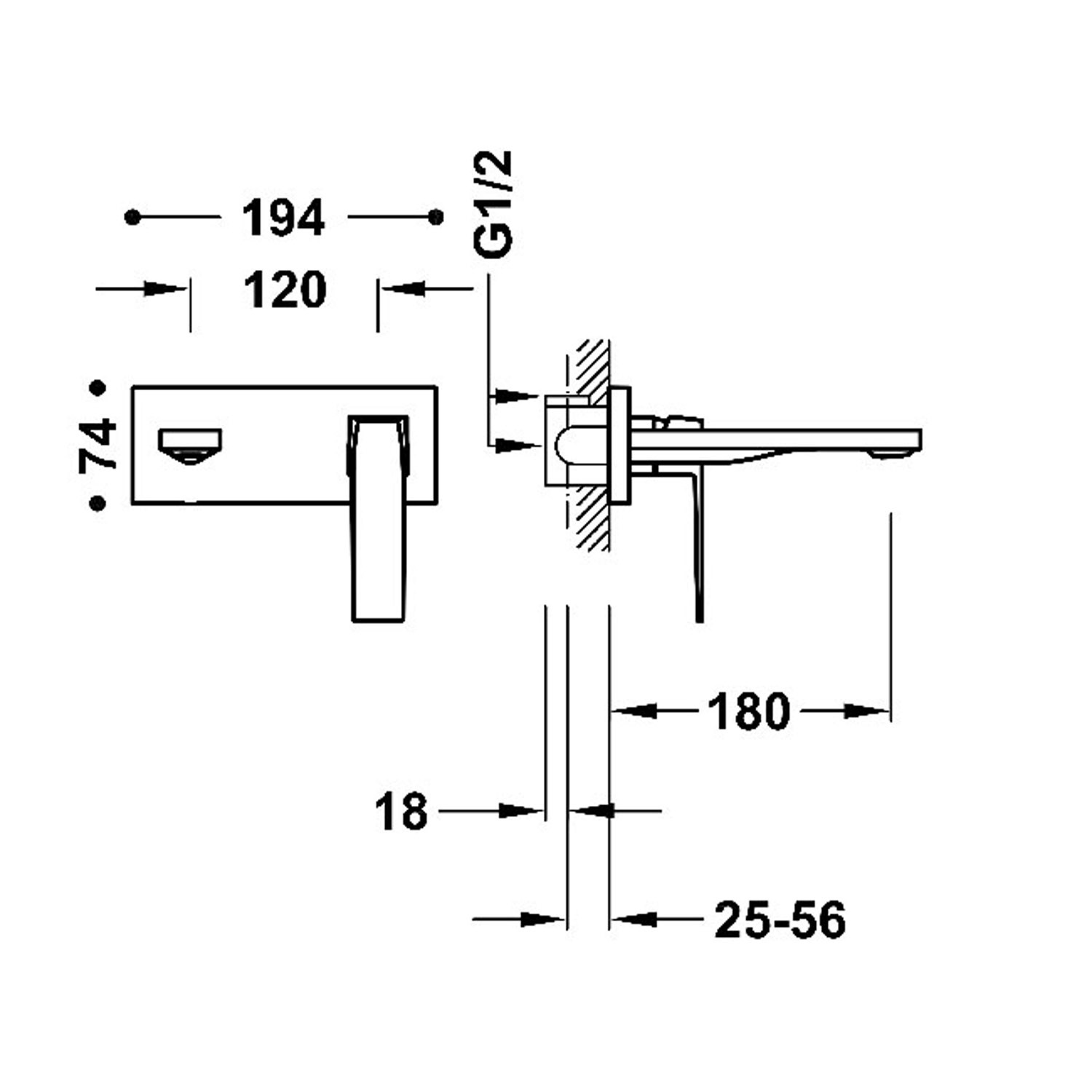 De afdekplaat heeft een afmeting van 19,4x7,4 cm. De uitloop is 18 cm lang. Het is een mengkraan. Door de hendel te bewegen draait u de kraan open en dicht en mengt u koud en warm water tot de gewenste temperatuur.