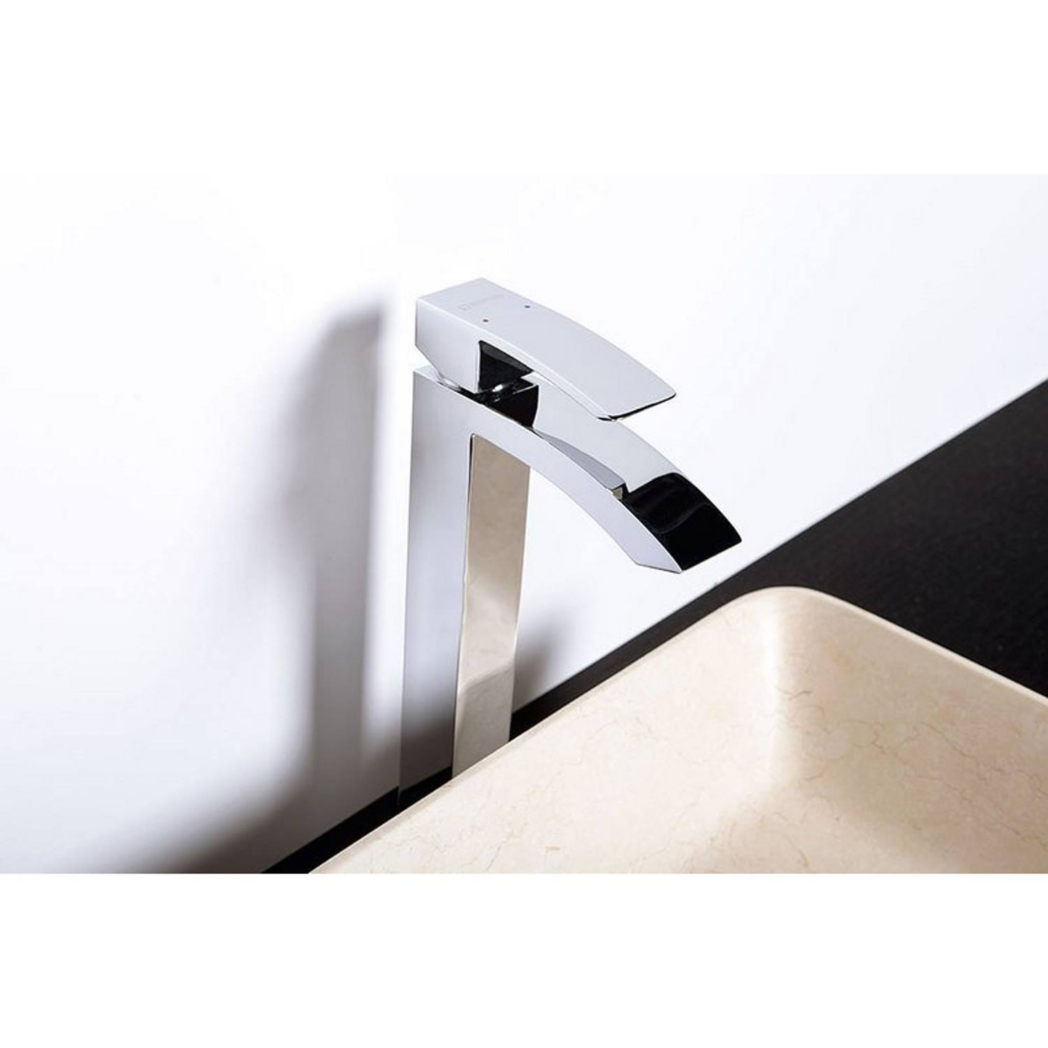 De Ginko hoge wastafelmengkraan van het merk Sapho heeft een uniek design en is geschikt voor elke moderne badkamer. De wastafelkraan is voorzien van een mengfunctie: dat houdt in dat u met de hendel warm en heet water kunt mengen tot de juiste temperatuur. U heeft geen 2 losse knoppen meer waar u mee moet stoeien om de juiste temperatuur te krijgen. De kraan heeft de hoogte van 29.6 cm. Ook heeft de kraan een keramisch binnenwerk, dit houdt de hendel jarenlang soepel in zijn beweging om water door te laten en de kraan goed te sluiten. De praktische kraan is afgewerkt in een chromen kleur.