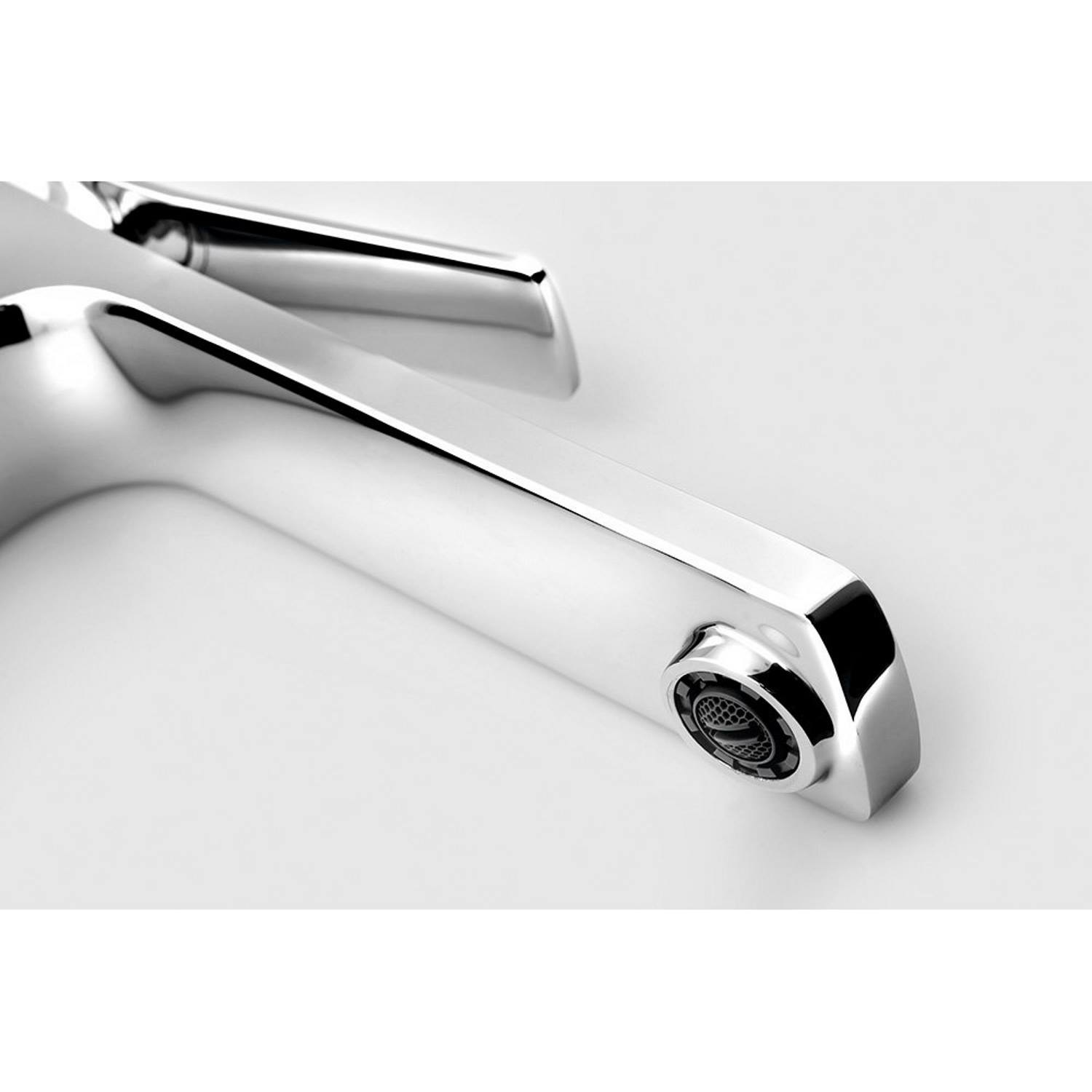 De Jumper wastafelmengkraan van het merk Sapho is geschikt voor elke moderne badkamer. Bij deze kraan bedien je de hendel om zo het warme en koude leidingwater te mengen. Het mengen doe je dus handmatig waardoor je zelf de temperatuur van het water kan aanpassen. Naar links of rechts draaien geeft dan warmer of kouder water, en door de hendel de andere kant op te bedienen om de kraan harder en zachter zetten. De kraan heeft de uitloop hoogte van 10.8 cm en een lengte van 13.8 cm.