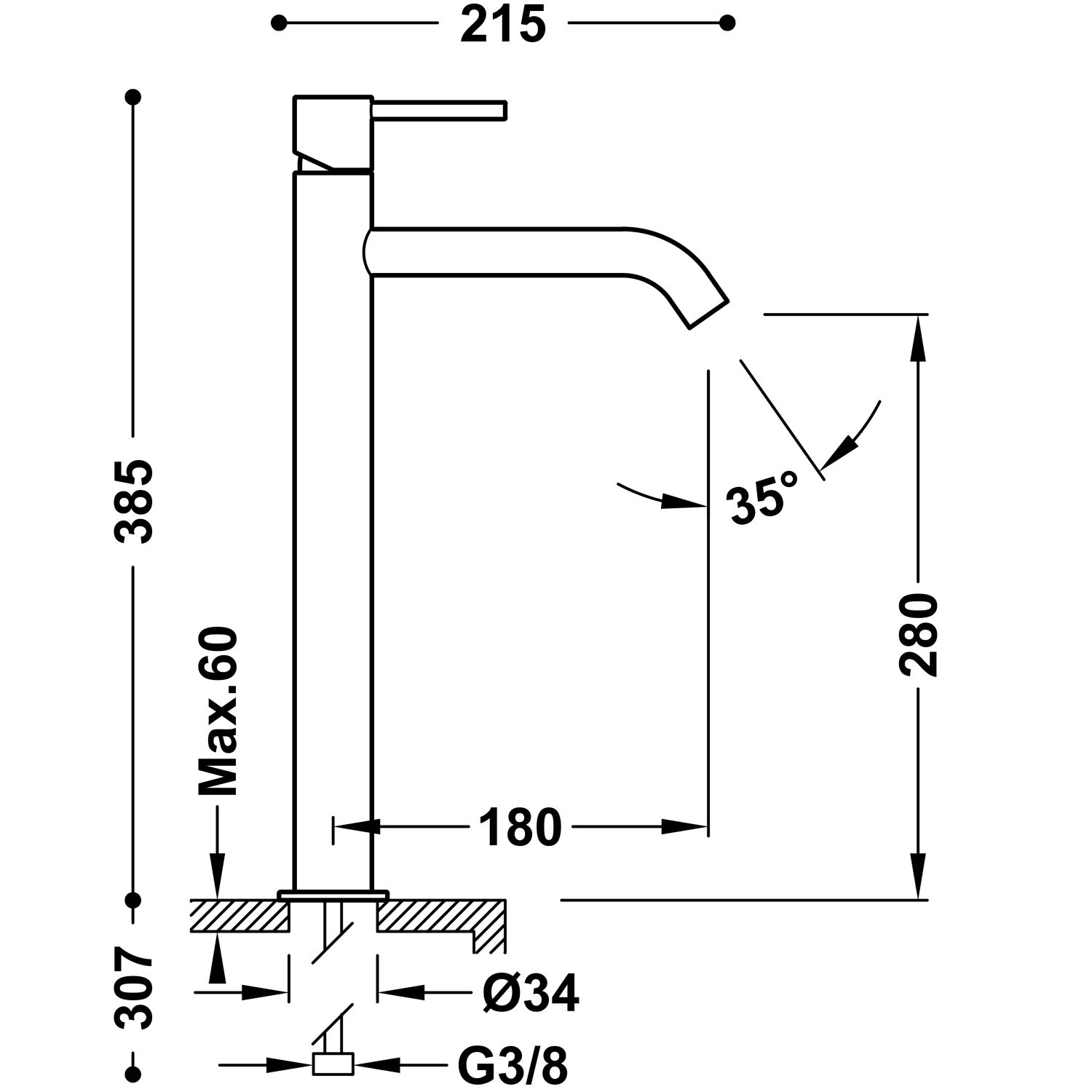 De kraan heeft een hoogte van 38,5 cm en een diepte van 21,5 cm. De uitloop is 28 cm hoog en 18 cm lang. De kraan heeft een 3/8" aansluiting. Hij is van messing in de kleur zwart brons. Het binnenwerk van de kraan is voorzien van keramische schijven, zodat de hendel soepel blijft bewegen en uw kraan langer meegaat.