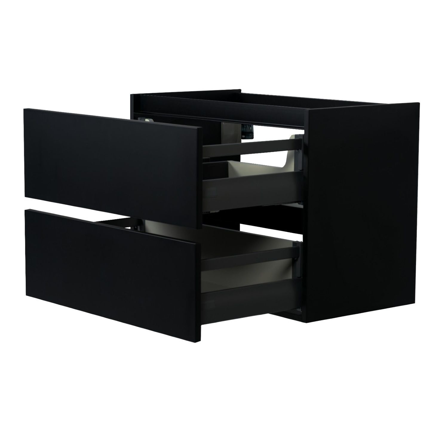 De Maia wastafelmeubel van het merk Boss & Wessing is een prachtige aanwinst voor in uw badkamer. De onderkast heeft een stijlvol design en een fraaie mat zwarte afwerking. De onderkast bevat twee softclose lades waarin uw toiletartikel bij de hand en netjes kan opbergen. Het softclose systeem van de lades zorgt er voor dat de lades geleidelijk en geruisloos dichtvallen zonder uw kast te beschadigen. De bijpassende topblad kunt u onderaan de pagina eenvoudig bijbestellen. De onderkast heeft een breedte van 59 cm, een hoogte van 58 cm en een diepte van 45 cm.
