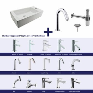 Fonteinset Chepri Mini Xxs 30,5X18X11 Cm Rechts Chroom (Keuze Uit 20 Kranen)