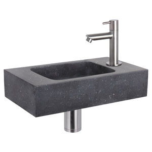 Fonteinset Differnz Bombai Natuursteen 40x22x9 cm Zwart Met Rechte Kraan Chroom