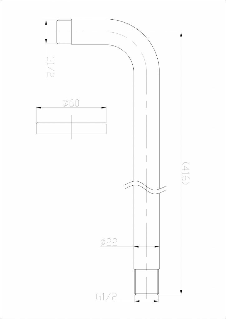 304-gebogen douchearm rond muurbevestiging 40cm RVS