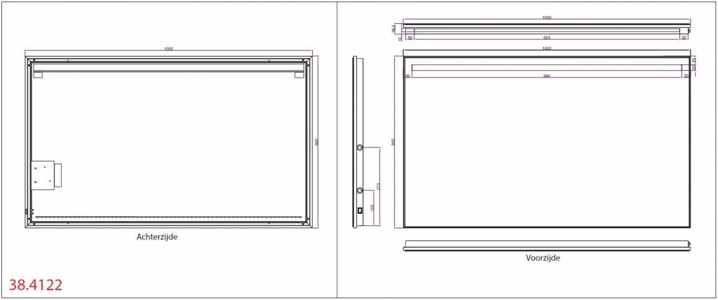 Voorzien van één spiegelverwarmings-matje van 250x350mm ter voorkoming van condensvorming