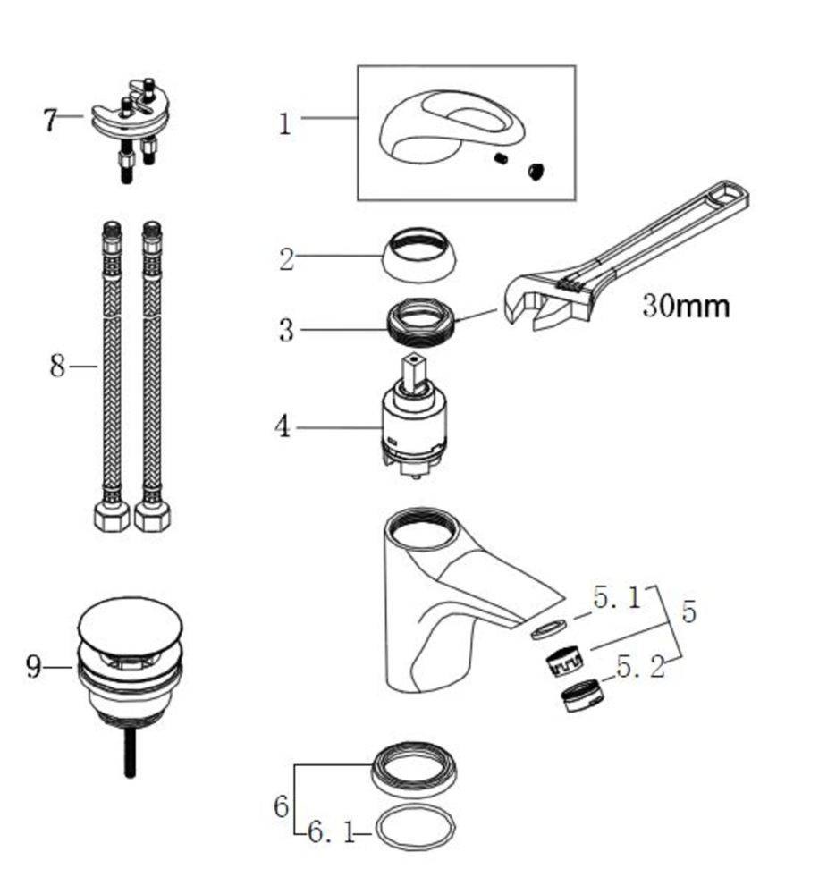 Wiesbaden Athos KIWA wastafelmengkraan + clickwaste chroom