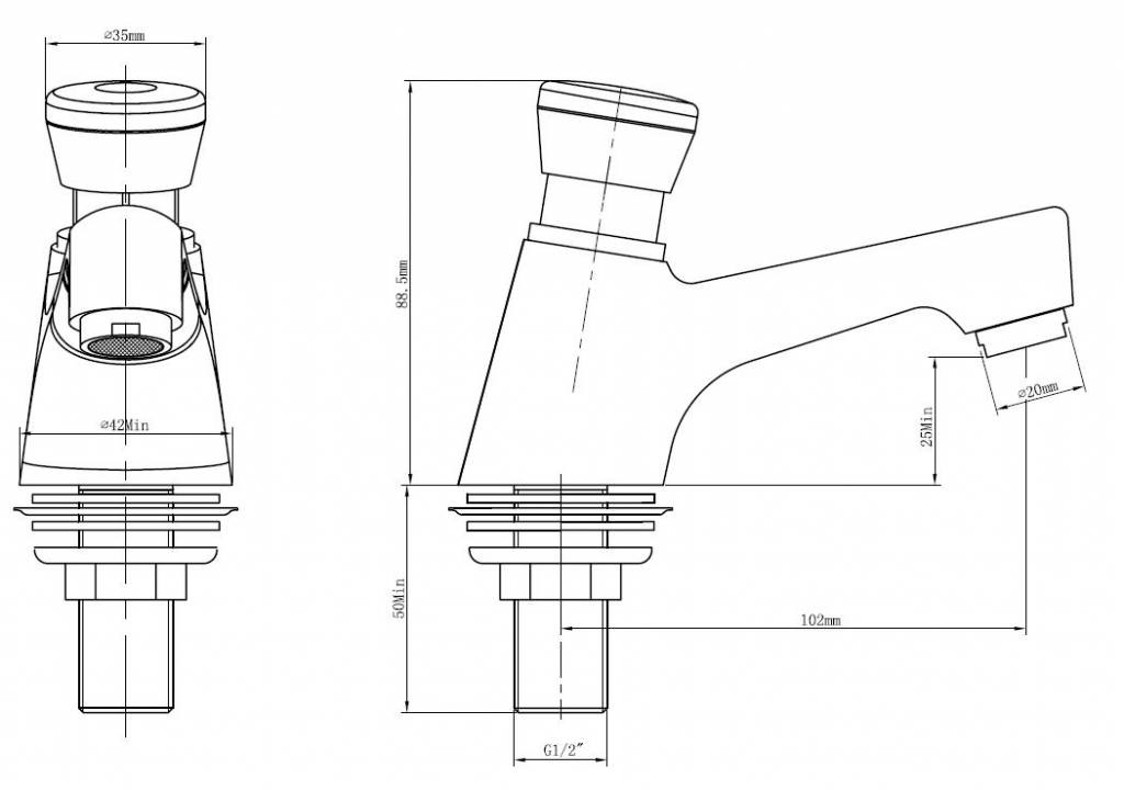 De Wiesbaden Autostop fonteinkraan met zelfsluit functie wordt gebruikt voor plaatsing op het fontein in het toilet. Een fonteinkraan heeft alleen een koud water functie.