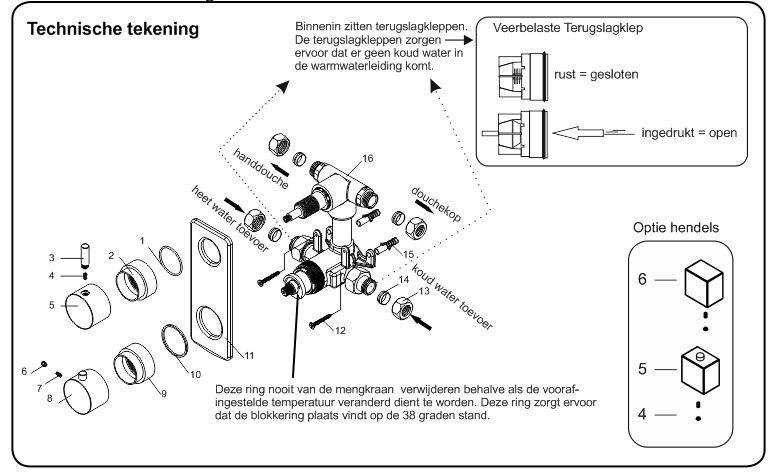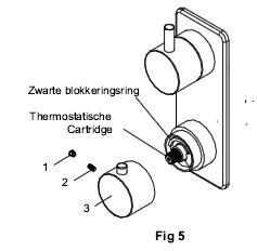 -de onderste knop is de thermostaatbediening met begrenzer op 38 gr.