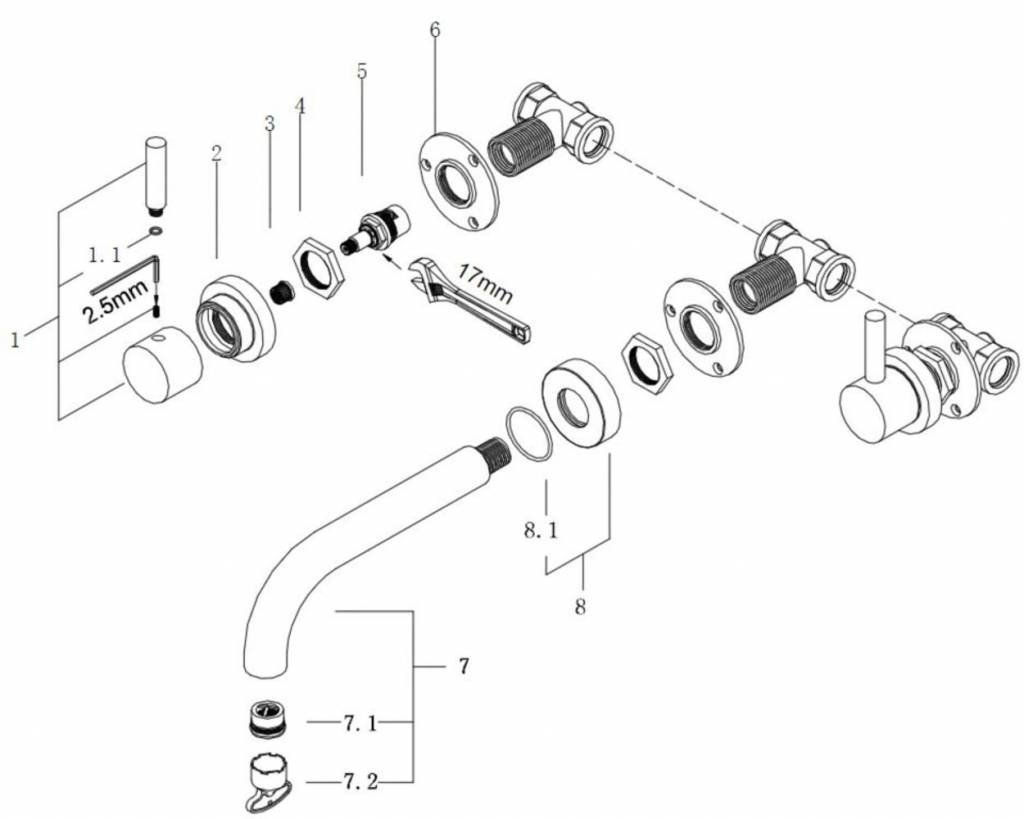Wiesbaden Caral inbouw-wastafelmengkraan 2-knops chroom