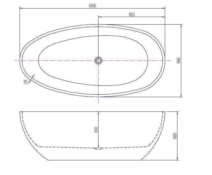 Ellips vrijstaand acryl ligbad