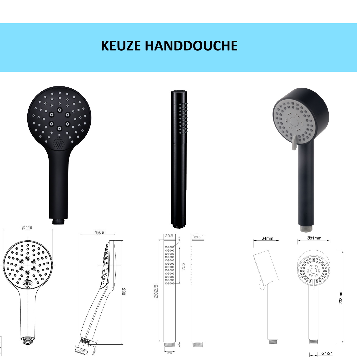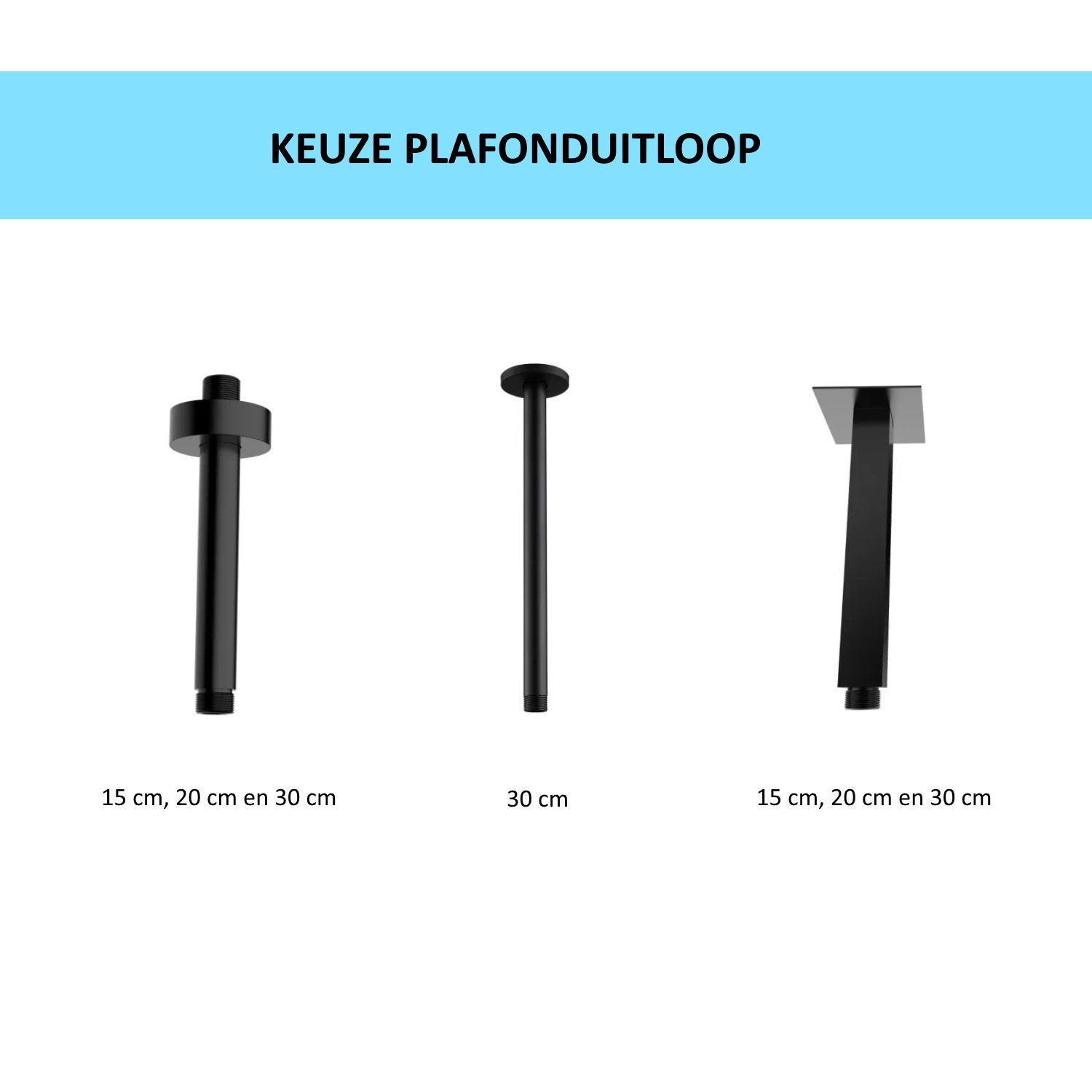 In de set kunt u kiezen uit verschillende regendouches en handdouchehouders. Er zijn lengte verschillende en vormen: vierkant en rond.