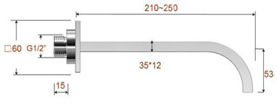 Inbouw-uitloop vierkant 25cm 1/2" chroom