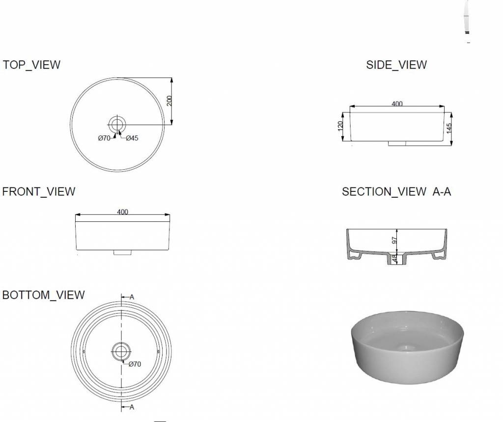 Wiesbaden Link opzetwastafel rond 400x145 wit