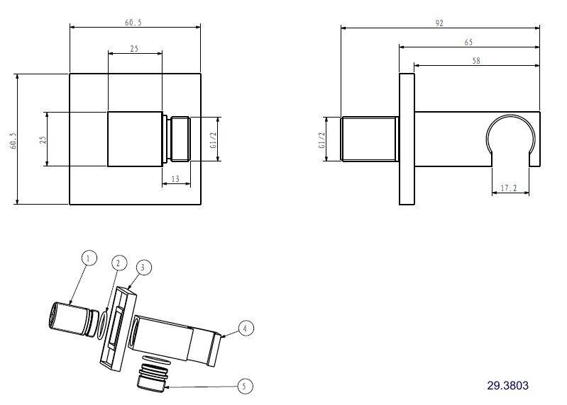 Wiesbaden luxe muur doucheaansluiting+opsteek vierk.1/2'' zwart