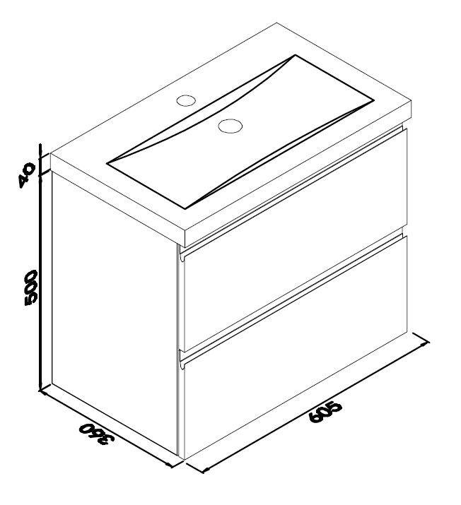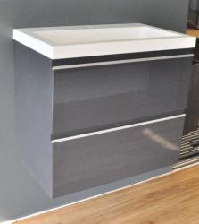 Wiesbaden onderkast meubel met dubbele laden, 60cmx36cm (zonder wastafel), Hoogte: 50cm, Softclose luxe DTC ladesysteem, Kleur: hoogglans grijs gelakt, ,Benaderbare RAL-kleur: RAL 7024,
