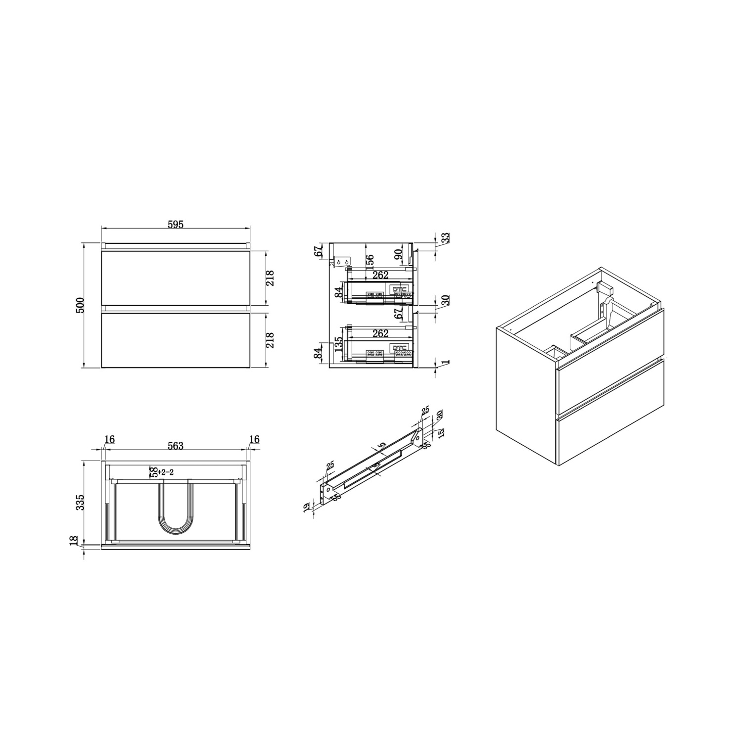 Wiesbaden onderkast 60cmx36cm zo.wastafel wit