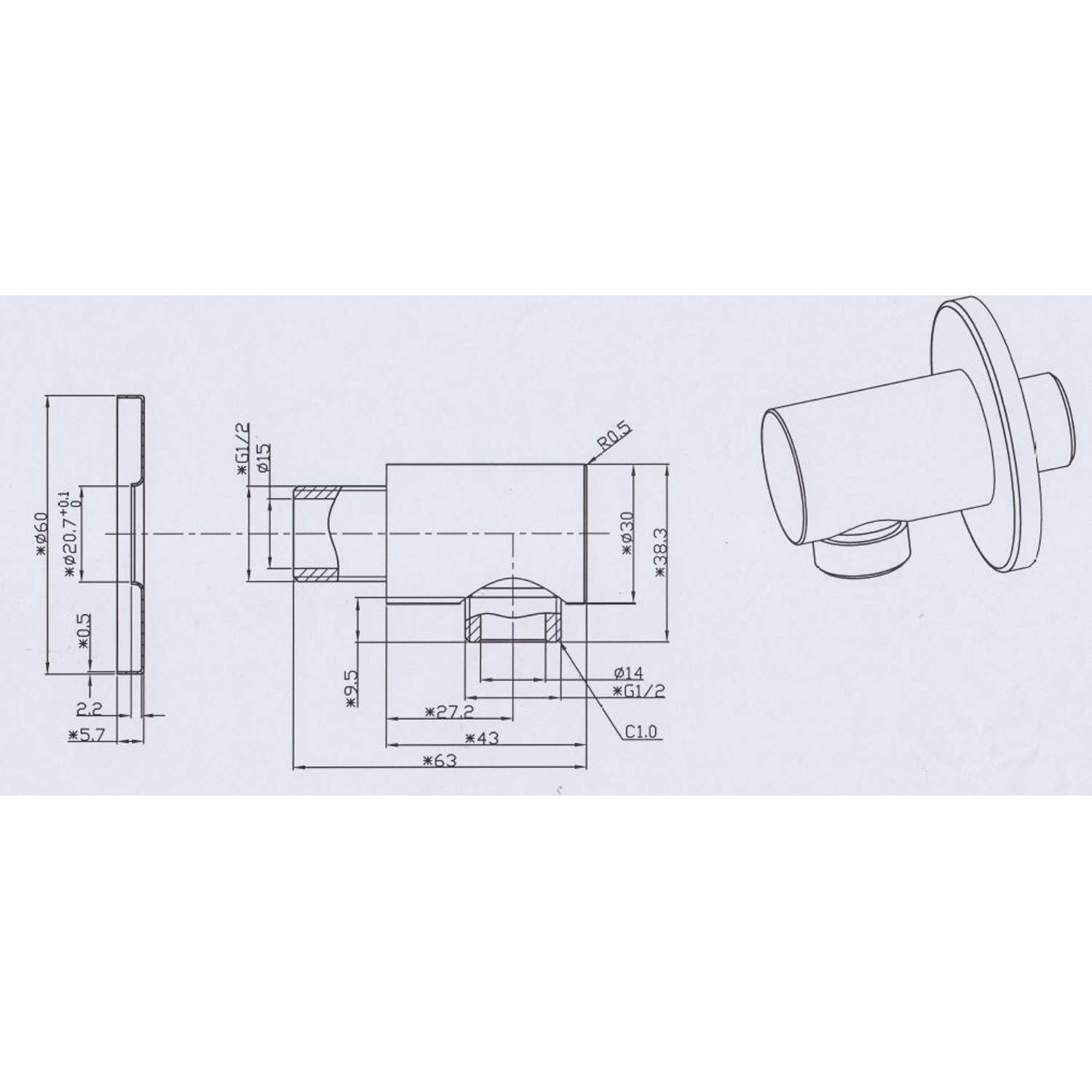 1x wand aansluiting rond