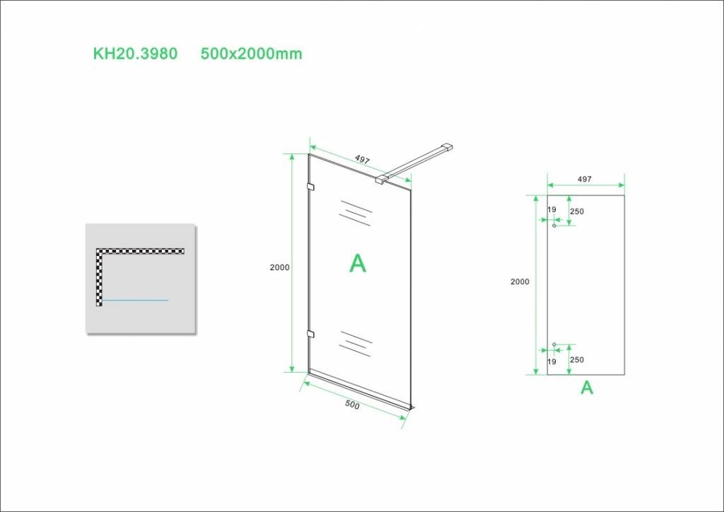 Profielloze inloopdouche 500x2000 8mm NANO glas