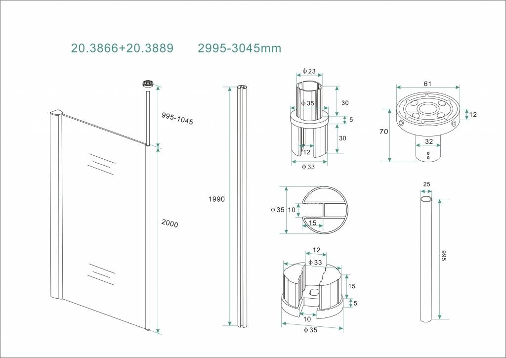 Wiesbaden set verticale stabilisatiestang + plafond bevestiging