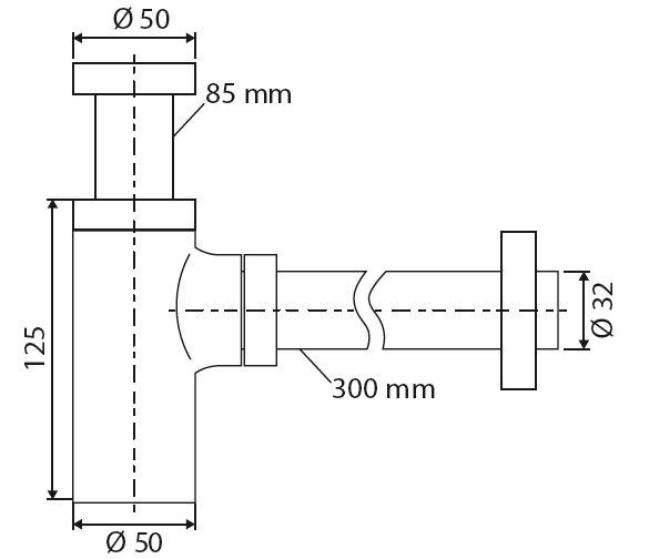 Star Luxe sifon 11/4" + muurbuis van 30cm + rozet RVS-look