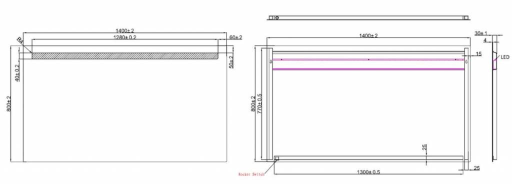 Tigris spiegel met led verlichting 1400x800, inclusief lichtschakelaar,