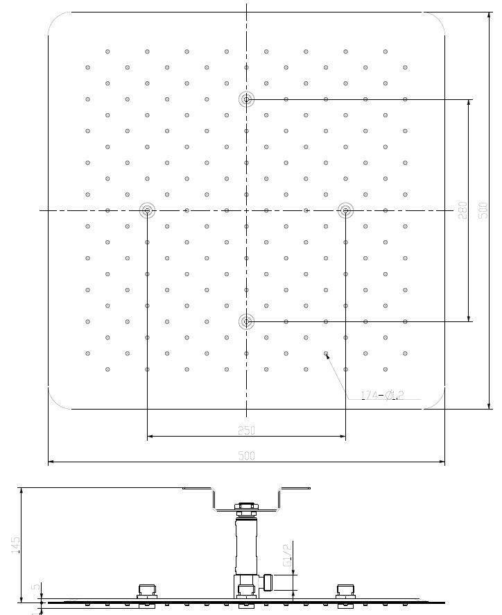 Wiesbaden UFO inbouw-hoofddouche plafond vierkant 50x50x2cm chroom