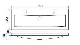Aqua Splash wastafel 100cmx36cm twee kraangaten wit