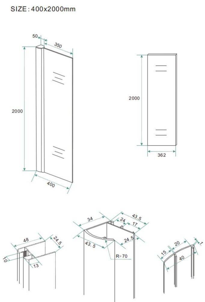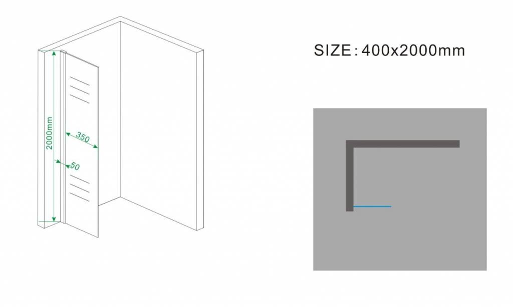 Zeer fraaie Inloopdouche 40cm breed 200cm hoog inclusief chroom zijprofiel en 10mm NANO veiligheidsglas voor het tegengaan van kalkafzetting op de glaswand. Verstelbaar van 40 cm - 42 cm