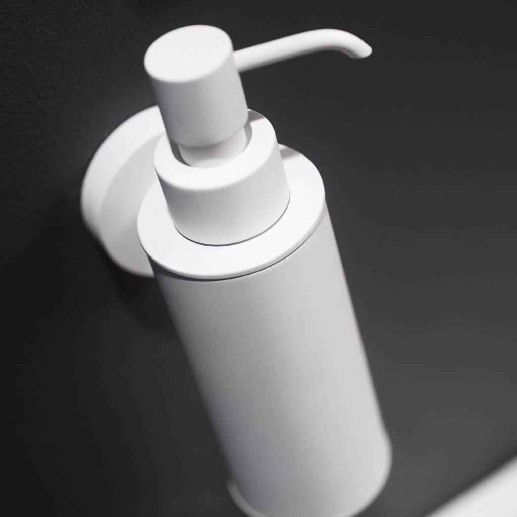 Heerlijk je handen schoonwassen. Dat wordt een stuk gemakkelijker met de Zeepdispenser van Metaal Mat Wit. Dit mooie ontwerp geeft een stijlvolle uitstraling aan uw badkamer. De zeepdispenser is te bevestigen aan de muur.