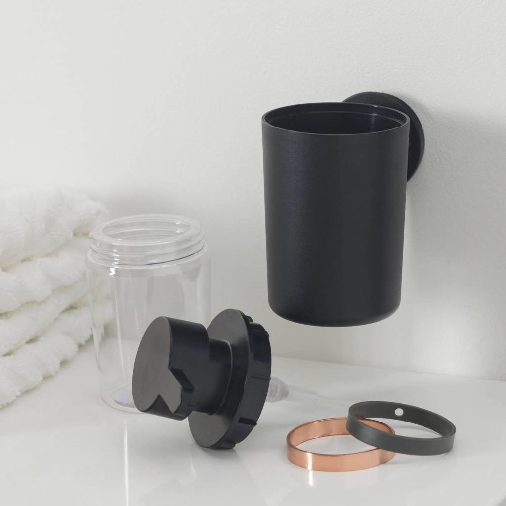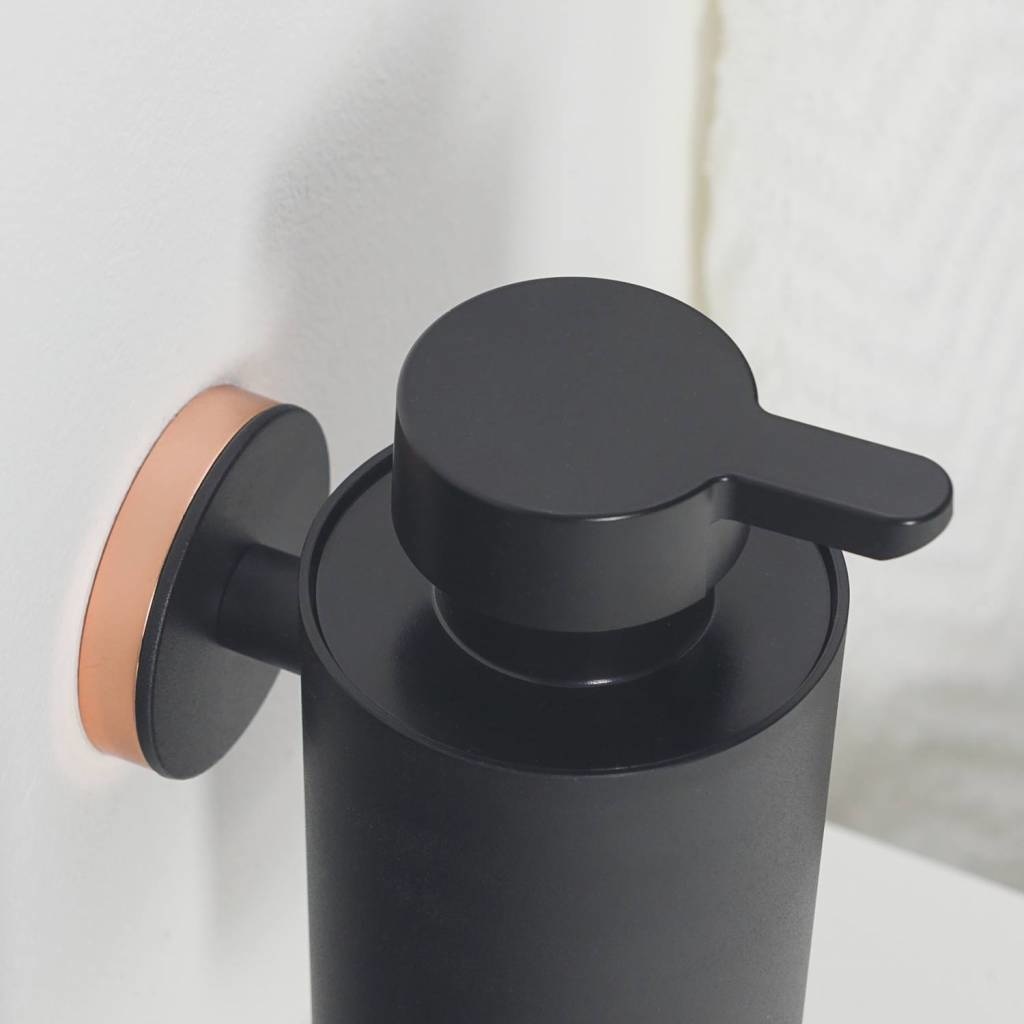 De zeepdispenser uit de Urban serie van Tiger is uitgevoerd in de kleur mat zwart en wordt geleverd met twee decorringen. De decorringen, in de kleur koper en grijs, maken het mogelijk een subtiel kleuraccent toe te voegen. Het is ook mogelijk de zeepdispenser zonder de decorring te monteren waardoor het zeer eenvoudig is om het product aan de gewenste stijl aan te passen. Bij de montage van het artikel wordt gebruik gemaakt van een muurplaatje waardoor de bijgeleverde bevestigingsmaterialen uit het zicht verdwijnen. De Urban serie bevat tevens een vrijstaande versie van de zeepdispenser, maar ook een groot aantal aanvullende accessoires voor de badkamer en toiletruimte. Alle in dezelfde stijl. De artikelen uit de serie zijn ook in de kleur mat wit verkrijgbaar, waarbij natuurlijk ook weer diverse decorringen worden meegeleverd.