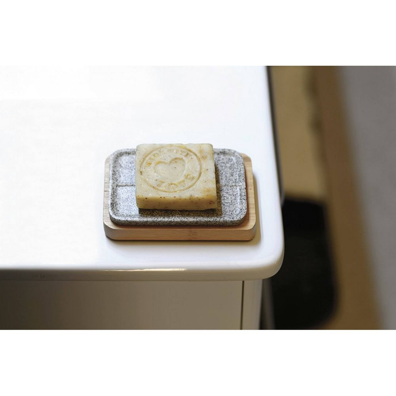 Specificaties Zeephouder Vrijstaand 13x8.5x2.5 cm Bamboe Grijs Sapho Nora: