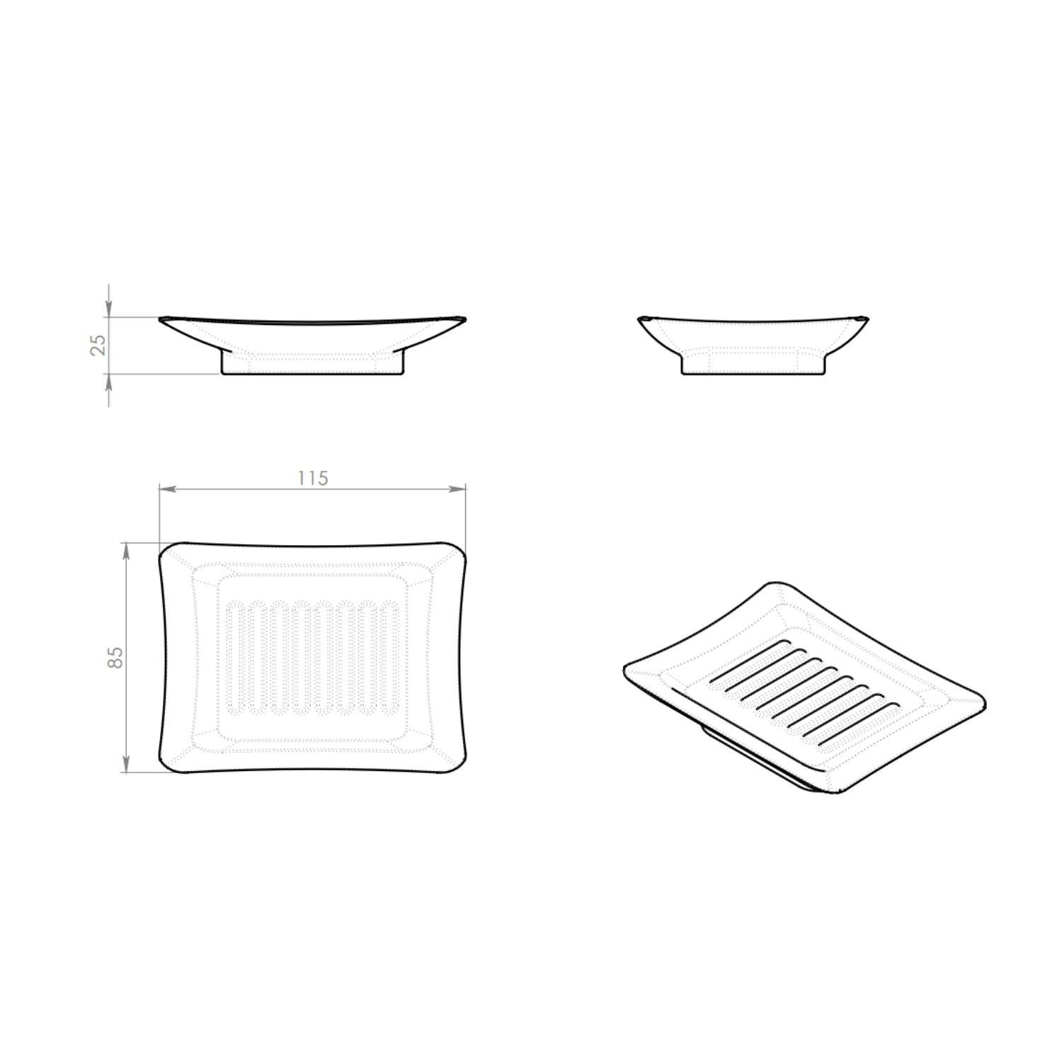 De zeephouder heeft een breedte van 11.5 cm, een diepte van 8.5 cm en een hoogte van 2.5 cm.